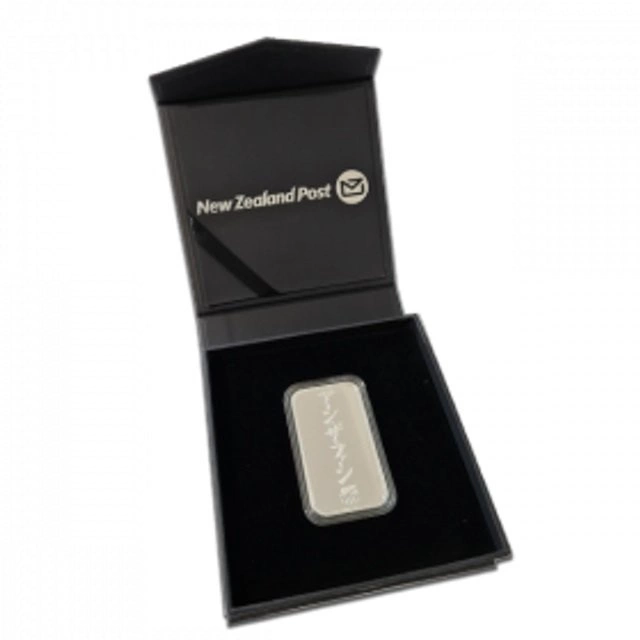 Averzní stranu mince zdobí logo novozélandské pošty a informace o hmotnosti a ryzosti slitku.