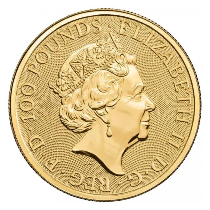 Královniny Bestie: Sada 11 zlatých mincí 1 oz 2016–2021 je exkluzivní kolekce investičních mincí, které vydala prestižní britská mincovna The Royal Mint. Každá mince zobrazuje jednu z legendárních heraldických bestií královny – symbolů moci, tradice a monarchistického dědictví Velké Británie. Kolekce je poctou britské heraldice a vyniká detailním zpracováním a vysokou sběratelskou hodnotou. Sada obsahuje 10 zlatých mincí o hmotnosti 1 unce z let 2016–2021 a unikátní závěrečnou minci „completer“, rovněž o hmotnosti 1 unce. Všechny mince jsou vyraženy z ryzího zlata o ryzosti 999,9 a nominální hodnotě 100 britských liber. Každý revers nese motiv konkrétní heraldické bestie, zatímco averz zdobí portrét královny Alžběty II. od Jodyho Clarka. Kolekce je uložena v elegantní dřevěné krabičce, která podtrhuje její exkluzivitu. Averz nese portrét královny Alžběty II. s nápisem „ELIZABETH II · D · G · REG · F · D · 100 POUNDS“ a rokem ražby. Reverz zobrazuje jednu z deseti heraldických bestií – například Lva Anglie, Draka Walesu, Jednorožce Skotska, či Gryfa Edwarda III. Závěrečná mince (completer) zobrazuje všech deset bestií kolem královského erbu. Všechny motivy jsou precizně zpracované s vysokým reliéfem. Stav L: některé mince mohou obsahovat drobné mikroškrábance nebo otisky, závěrečná mince lehce setřený reliéf na averzu. Krabička nese jemné známky používání. Obrázky mají ilustrační charakter.