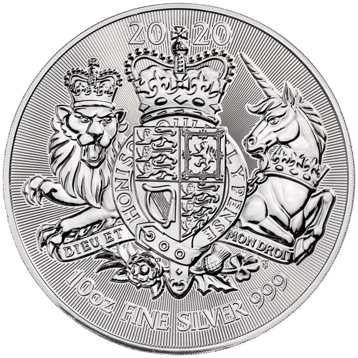 Královské zbraně jsou mincí, která dokonale obohatí každé investiční portfolio. Tato stříbrná mince je vyražena v ryzosti Ag.999, váží deset trojských uncí a má průměr 89 mm. Za její emisi je zodpovědná Královská mincovna, respektovaný a důvěryhodný výrobce drahých kovů.