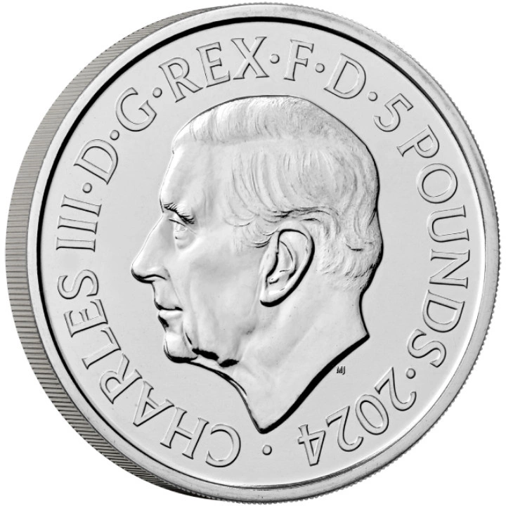 Na averzu je zobrazena podobizna britského krále Karla III. a nominální hodnota a letopočet podle návrhu Martina Jenningse.