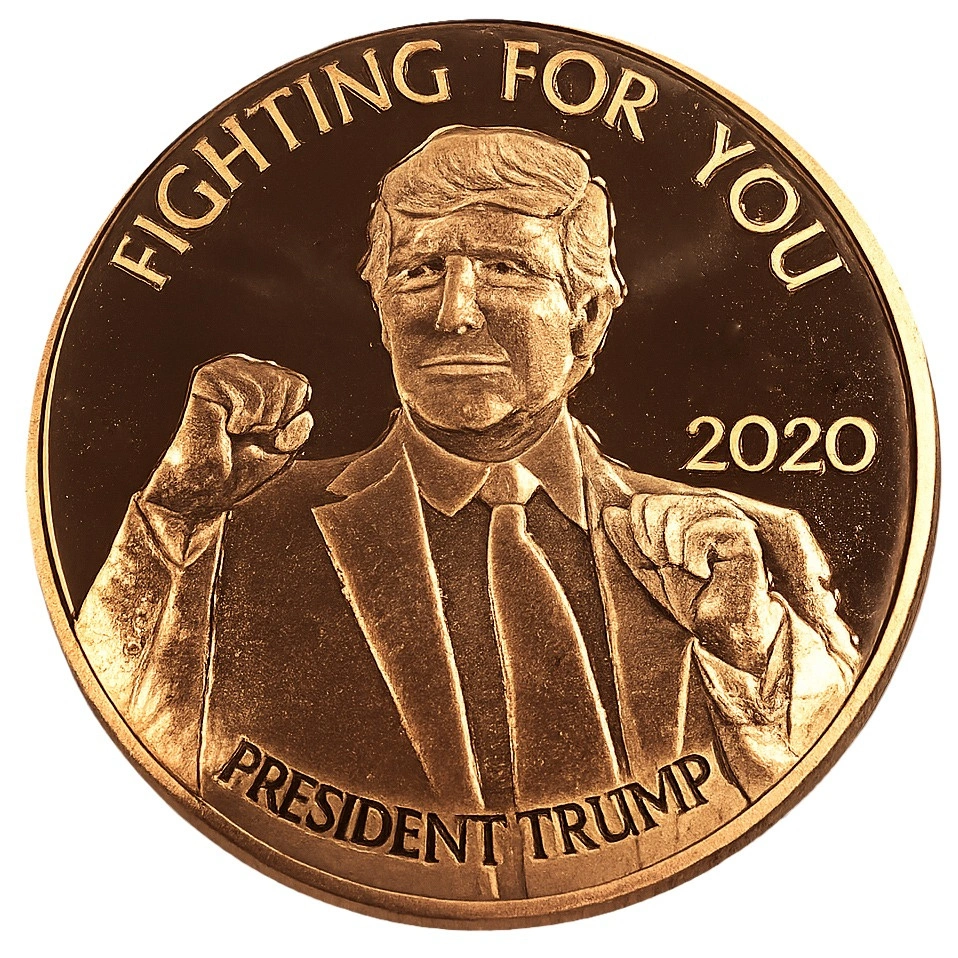 Motiv odkazuje na Donalda J. Trumpa, bývalého prezidenta Spojených států. Heslo „FIGHTING FOR YOU“ na averzu navazuje na známé politické slogany. Medaile je příkladem současné politicky laděné numismatiky.