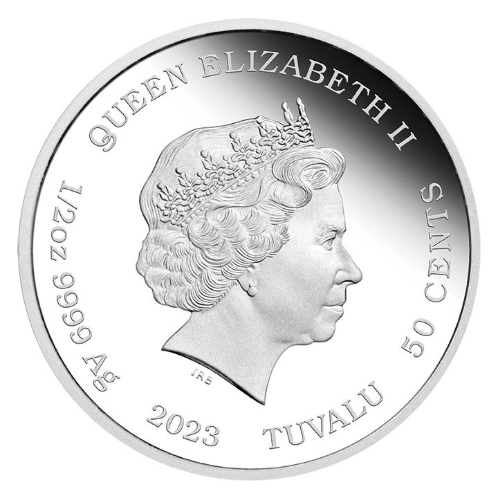 Averz stříbrné mince zdobí podobizna královny Alžběty II. Celek je obklopen nápisem „ELIZABETH II“. , „TUVALU“ a informace o nominální hodnotě, hmotnosti a ražbě. Autorem averzu je Ian Rank-Broadley.