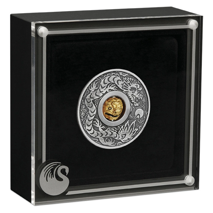 Mince byla vyražena z ryzího stříbra Ag.9999 o hmotnosti 1 trojské unce ve starožitném standardu. Sběratelská edice Rok draka je vyrobena v limitovaném nákladu pouhých 3 000 kusů. Každá mince je navíc obohacena o rotující zlacený obraz titulního zvířete. Jednotlivé kusy jsou navíc dodávány v elegantním balení s přiloženým certifikátem pravosti.