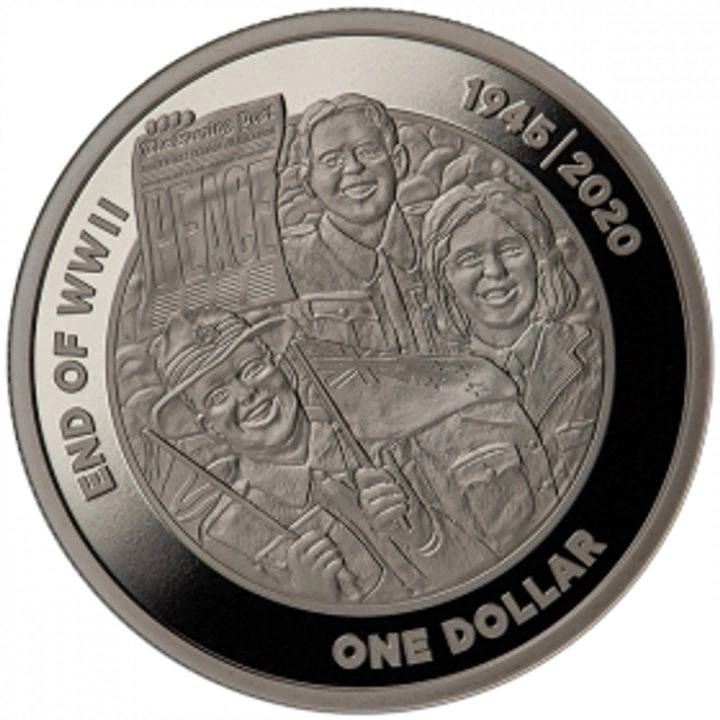 Na reversu stříbrné mince jsou zobrazeni jásající Novozélanďané nad koncem války. Na rubové straně se dále nachází informace o nominální hodnotě mince, nápisy „END OF WWII“, „1945/2020“. Autorem návrhu reverzní strany je Nicky Dyer.
