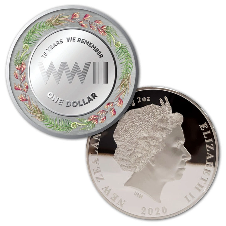 WWII 75 Years Remembrance barevná 2 unce stříbra 2020 Proof