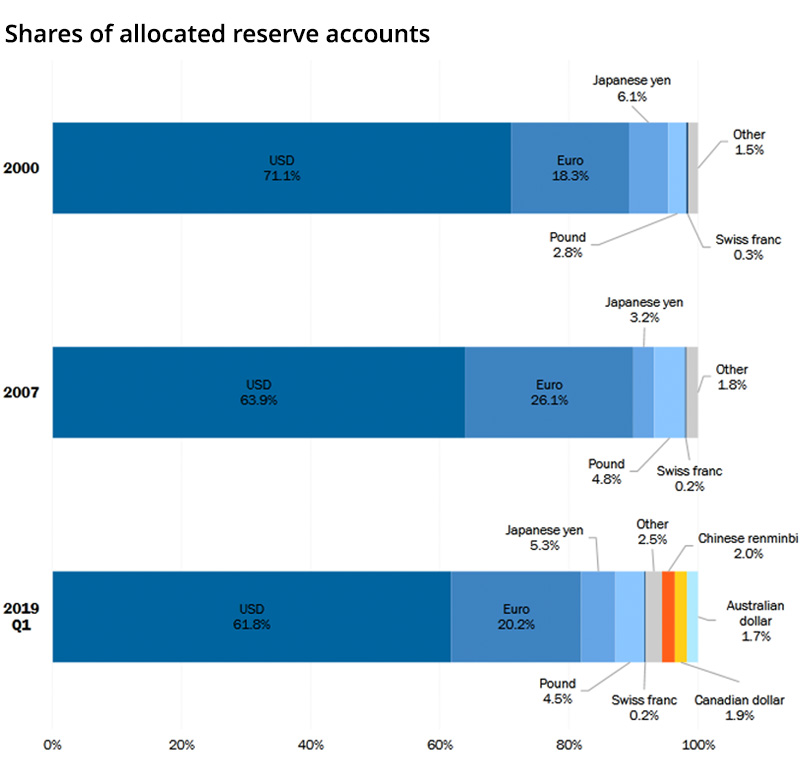 Having covered Euro, as second most important reserve currency of the world in terms of size, we should discuss actual share of reserves.
