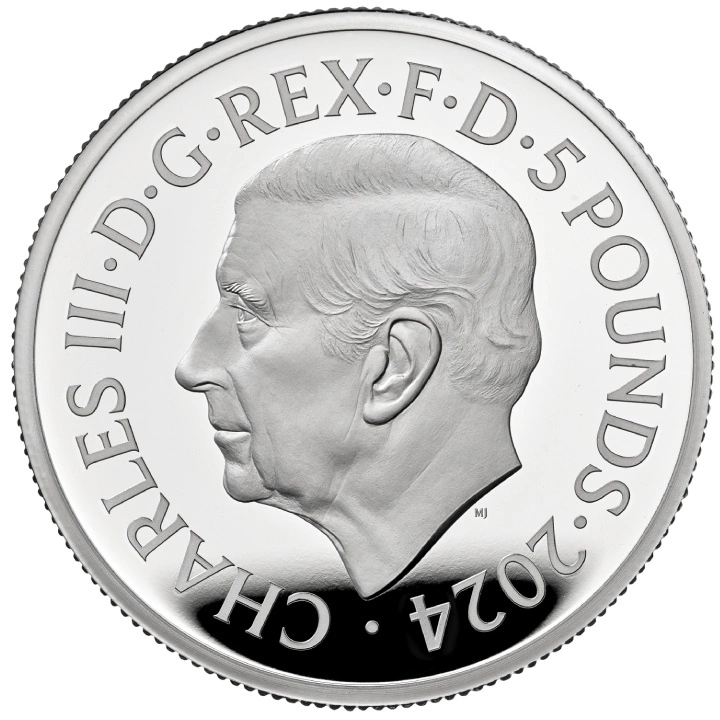 Die Vorderseite zeigt das Konterfei von König Karl III. von Großbritannien sowie Informationen über das Ausgabedatum und den Nennwert der Münze. Der Designer der Vorderseite war Martin Jennings.