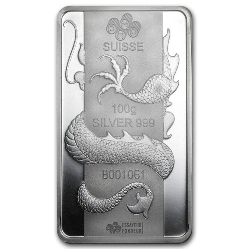100 gramów Sztabka Srebra seria Lunar Rok Smoka