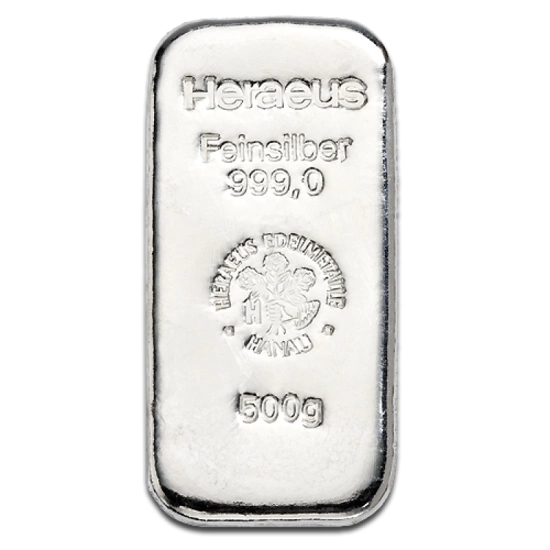 500 gram Silberbarren Heraeus