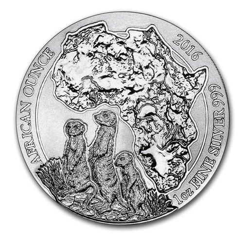 Na rewersie monety został przedstawiony wizerunek afrykańskiej surykatki wraz z konturami kontynentu afrykańskiego.