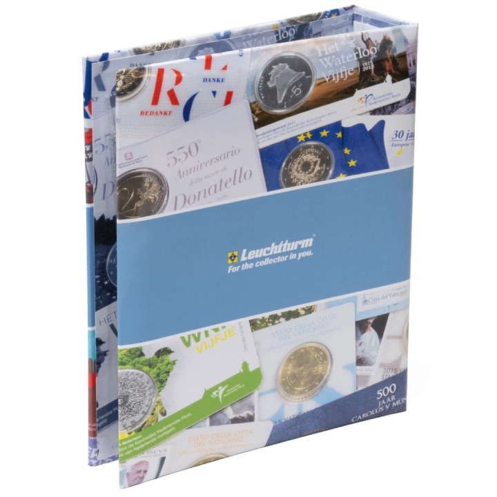 Das Album bietet Platz für bis zu 80 Münzen in Karten in 10 fest befestigten, transparenten Blättern, sodass Münzen von beiden Seiten betrachtet werden können. Die Blätter bestehen aus weichmacherfreiem Kunststoff und bieten Schutz vor Beschädigungen und Verunreinigungen. Dank der speziellen Innentaschen mit den Maßen 90 x 64 mm garantieren die Blätter eine stabile Aufbewahrung und einfaches Befüllen von oben.