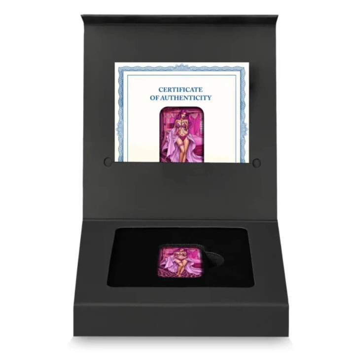 Der Barren besteht aus Silber höchster Reinheit Ag.9999, wiegt 2 Unzen Troy und misst 40,13 x 25,07 x 7,5 mm. Er verfügt über eine antike Oberfläche und farbige Elemente, die seinen einzigartigen Charakter unterstreichen. Jedes Stück ist in zertifizierter Verpackung verpackt, und die Auflage beträgt nur 500 Exemplare, was ihn zu einem äußerst begehrten Sammlerstück macht.