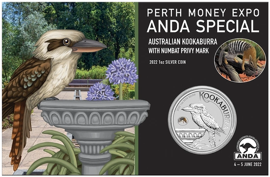 Diese einzigartige Kookaburra mit Numbat kolorierte 1 Unze Silber 2022 Privy Mark (Perth Money Expo Anda Special) Münze wurde für die numismatische Veranstaltung, die Perth Money Expo 2022, die am 4-5 Juni 2022 in Perth, Australien, stattfinden wird, ausgegeben. Das Produkt hat eine streng limitierte Auflage von höchstens 1.500 Stück, wobei jede Münze in einem Etui mit einem Echtheitszertifikat geliefert wird.