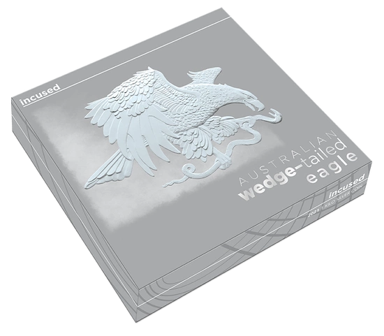 Kolekcjonerska srebrna moneta Orzeł Australijski 1000 gramów Srebra 2021 Incused to unikatowy produkt, który został przygotowany przez renomowaną australijską mennice The Perth Mint. Ta srebrna moneta jest produktem szczególnie polecanym kolekcjonerom, chcącym poszerzyć swoje unikalne portfolio. Moneta z 2021 roku bita jest w standardzie incused, z czystego srebra próby Ag.9999, o wadze 1000 gramów.