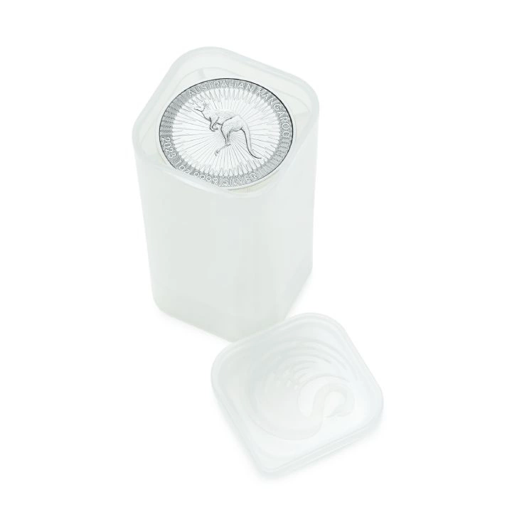 Das australische Känguru, die berühmteste Anlagemünze, die in Australien von der ältesten Prägeanstalt - Perth Mint - geprägt wird. Die aus reinem Silber mit dem Feingehalt Ag.9999 geprägte Silberanlagemünze mit einem Gewicht von 1 Feinunze wird im Jahr 2023 ausgegeben. Die Münze unterscheidet sich durch ihre interessante Rückseite von den anderen Anlagemünzen der Serie. Außerdem hat sie die zusätzliche Sicherheit eines eingravierten "P" auf der Rückseite.