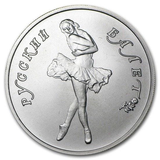 Awers palladowej monety przedstawia podobiznę tańczącej baleriny.