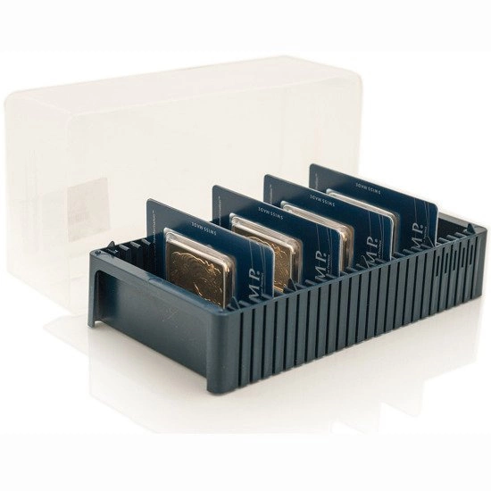 Inwestycyjne opakowania są dopasowane do przechowywania 25 sztabek. Pasujące sztabki mogą posiadać wagę od 1 do 100 gramów.To rozwiązanie, które jest powszechnie stosowane przez mennice, a które będzie idealnym wyborem dla osób posiadających obszerne kolekcje numizmatów.
