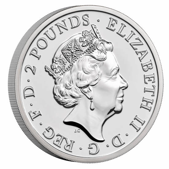 Awers przedstawia wizerunek Królowej Wielkiej Brytanii, Elżbiety II w koronie. Na awersie znajduje się także informacja o wartości nominalnej waloru. Projektantem awersu był Jody Clark.