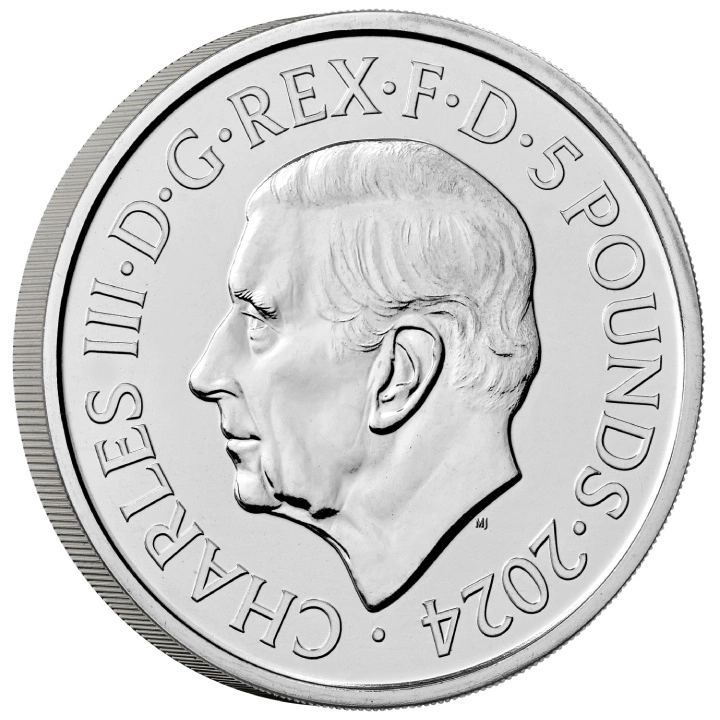 Die Vorderseite zeigt das Konterfei von König Karl III. von Großbritannien sowie Informationen über das Ausgabedatum und den Nennwert der Münze. Der Designer der Vorderseite war Martin Jennings.