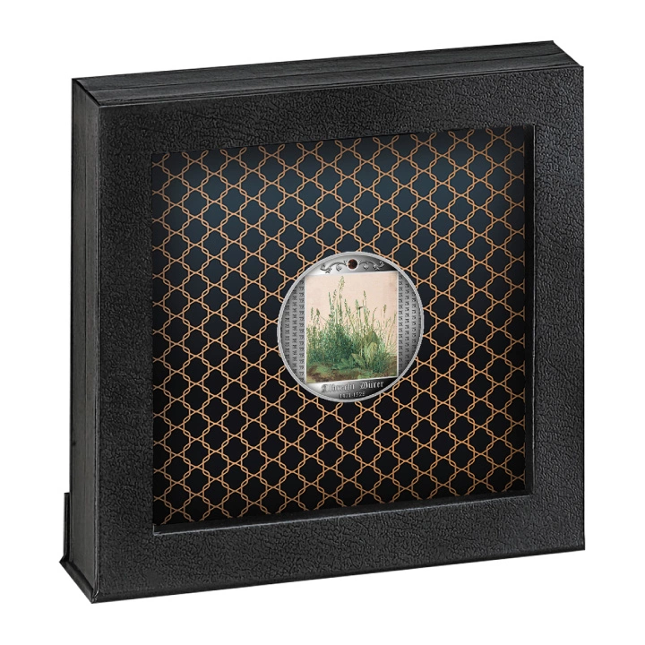 Die Silbermünze Kamerun: Albrecht Dürer - Grasstudie koloriert Silber 2021 Proof erinnert an Albrecht Dürer und den 550. Jahrestag seiner Geburt. Das Exemplar zeigt ein Gemälde, das eine scheinbar ungeordnete Gruppe von Wildpflanzen darstellt: darunter Löwenzahn und Wegerich. Das Werk gilt als eines von Dürers Meisterwerken realistischer naturalistischer Studien.