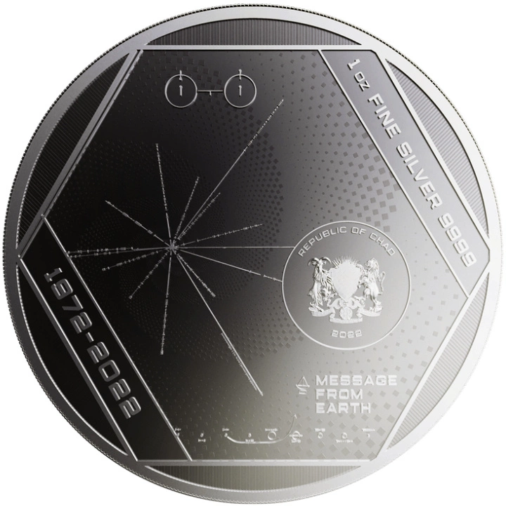 Tschad-Silbermünze: Die Pioneer Plaque 1 Unze Silber 2022 ist ein interessantes Angebot in Anlagequalität des slowakischen Edelmetallherstellers Pressburg Mint. Das Produkt besteht aus reinem Ag.9999 Sterlingsilber mit einem Gewicht von 1 Feinunze in Proof-Qualität. Darüber hinaus ist die Auflage der gesamten Münze auf 999 Stück begrenzt. Jede Münze wird von der tschadischen Regierung garantiert und ist im Land des Ausstellers ein vollwertiges gesetzliches Zahlungsmittel.