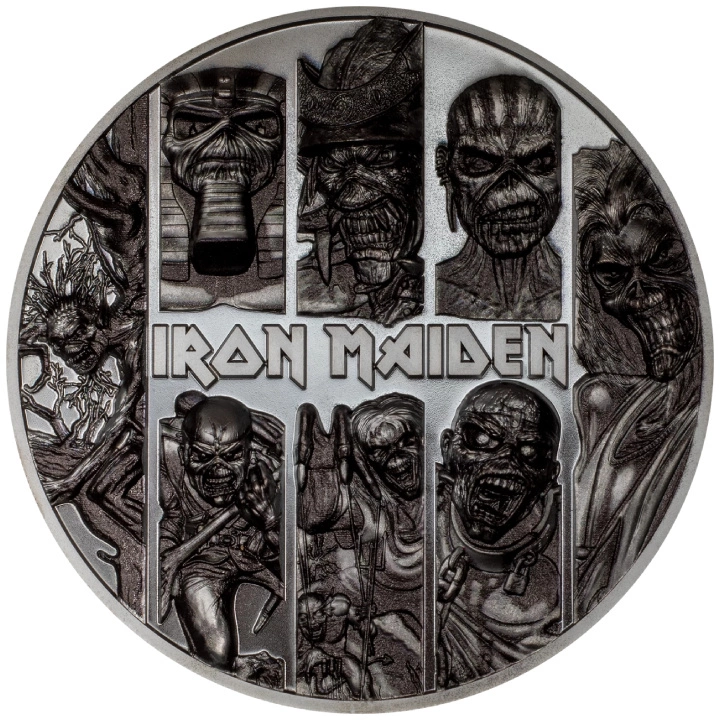 Cook Islands: Iron Maiden - Senjutsu Coloured 2 ounce Silver 2022 Proof Ultra High Relief ist eine Valentinsmünze zum siebzehnten Album der britischen Musikgruppe Iron Maiden. Das Album wurde am 3. September 2021 veröffentlicht. Das Material wurde in Paris aufgenommen und der Sound wurde von den Produzenten Kevin Shirley und Steve Harris betreut.