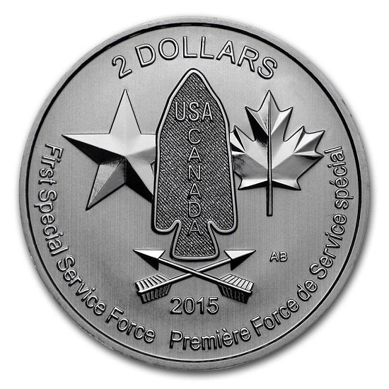 Awers projektu Susanna’y Blunt, przedstawia brytyjską królową Elżbietę II, wraz z wartością nominalną, która wynosi 2$. Na rewersie znajduje się stylizowana gwiazda, a także liść klonu, na brzegu monety widnieje napis „First Special Service Force”. Poniżej gwiazdy i liścia klonu znajduje się grot strzały, symbolizujący ducha wojownika FSSF.