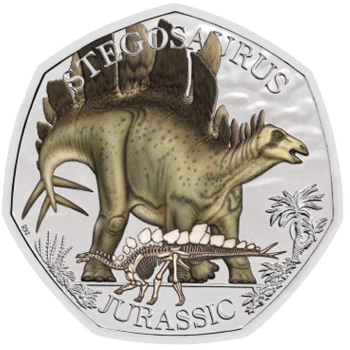 Dinosaurs: Iconic Specimens - Stegosaurus 50p coloured Silber 2024 Proof