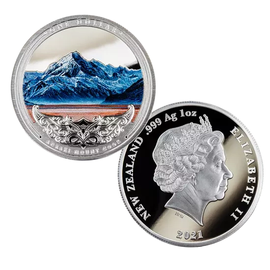 Discover New Zealand: Aoraki Mount Cook coloured 1 oz Silber 2021 Proof