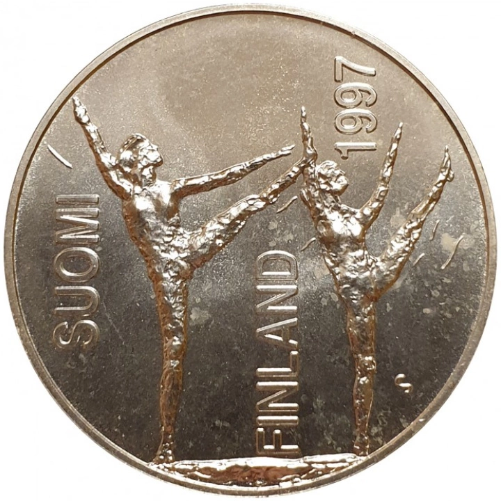 Rückseite: Enthält in der Regel den Nennwert „100 MK“, den Namen des Emittenten „SUOMI FINLAND“, das Prägejahr sowie weitere grafische Elemente wie Porträts, Sportsymbole oder historische Figuren, je nach spezifischer Münzausgabe.