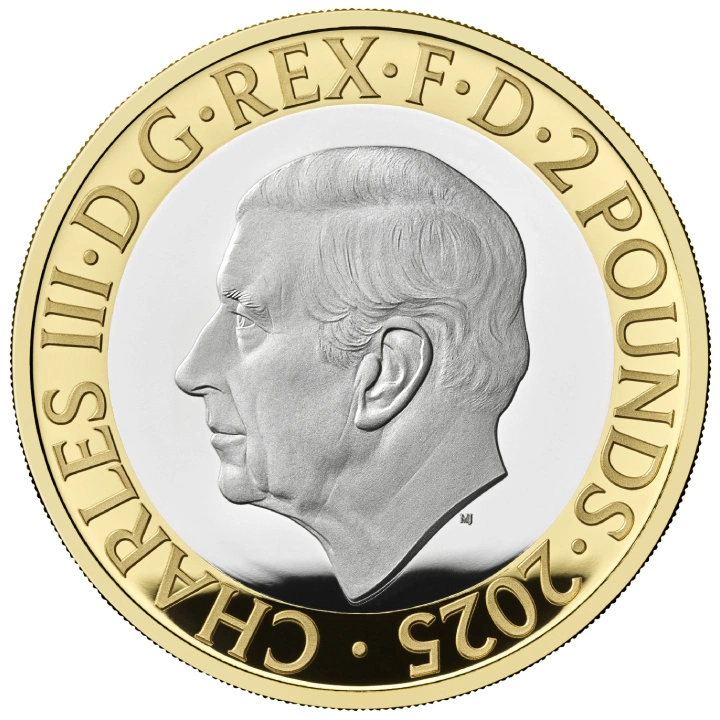 Die Vorderseite zeigt das Konterfei von König Karl III. von Großbritannien, die Inschrift "CHARLES III∙D∙G∙REX∙F∙D" sowie den Nennwert und die Jahreszahl, entworfen von Martin Jennings.
