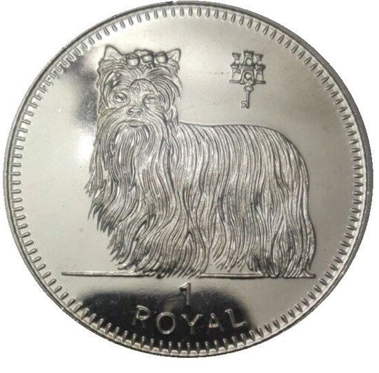 Srebrna moneta z wizerunkiem Yorkshire Terrier to walor wykonany z czystego kruszcu próby 999, o wadzę jednej uncji. Jest to moneta, która kończy oraz przynależy do serii złotych oraz srebrnych walorów - Gibraltar's Royal Dog. Seria liczy 7 odsłon, które były wydawane w latach 1991 -1997.