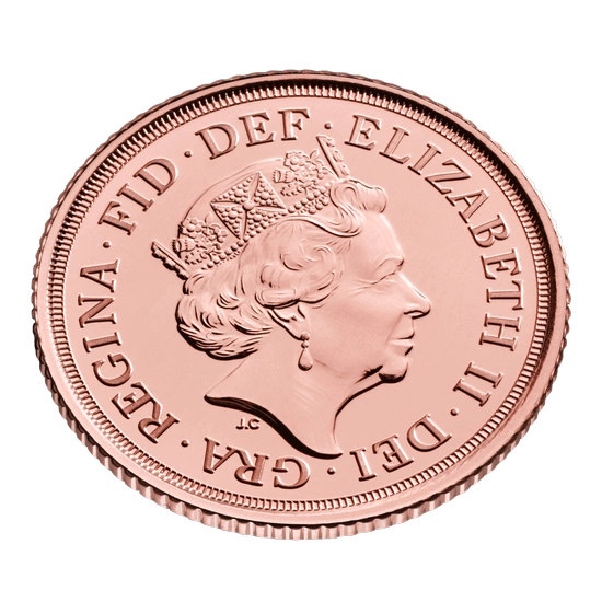Rewers przedstawia herb Wielkiej Brytanii. Na dole złotej monety podana jest również data emisji waloru. Projektantem rewersu był Timothy Noad.