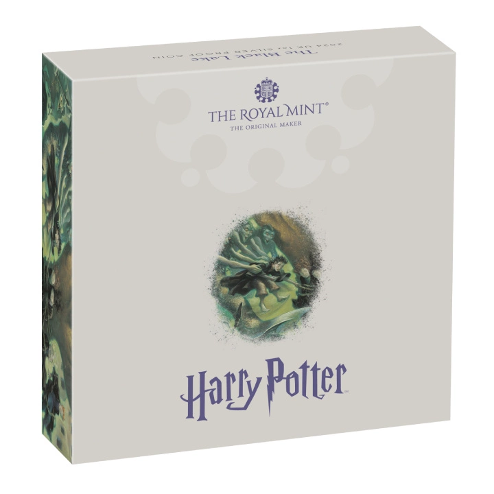 Harry Potter: Black Lake 1 oz Silber 2024 Proof erinnert an eines der denkwürdigsten Ereignisse aus Harry Potters viertem Jahr an der Schule für Hexerei und Zauberei in Hogwarts – die zweite Aufgabe des Trimagischen Turniers. In dieser besonderen Ausgabe wird der junge Zauberer in einem Schlüsselmoment dargestellt, als er mutig in die dunklen Tiefen des Schwarzen Sees eintaucht, um einen wertvollen Schatz zurückzuholen, der von den Meerjungfrauen gestohlen wurde.