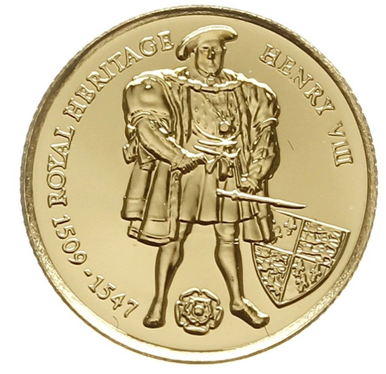 Złota moneta z honorująca Henryka VIII to idealna alternatywa dla drobnych inwestorów. Moneta bita jest z 24-karatowego złota o próbie 9999 oraz posiada wagę 1/25 uncji. Ten wyjątkowy okaz został wykonany w standardzie proof.