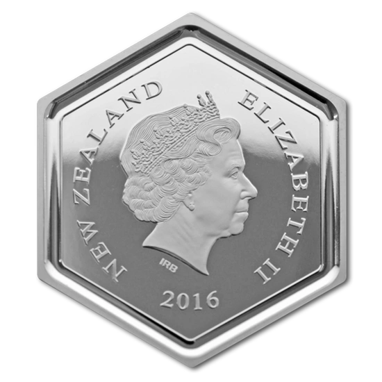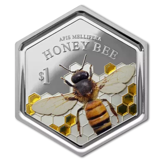 Srebrna moneta Pszczoła miodna kolorowana 1 uncja Srebra 2016 Proof to egzemplarz, który wyróżnia się nietuzinkowym designem oraz oryginalnym kształtem. Kolekcjonerska moneta z roku 2016 została wybita w kształcie plastra miodu o próbie kruszcu Ag.999 oraz wadze jednej uncji trojańskiej. Ponadto, ta srebrna moneta jest bita przez BH Mayer’s Kunstprägeanstalt GmbH na zlecenie New Zeland Post.