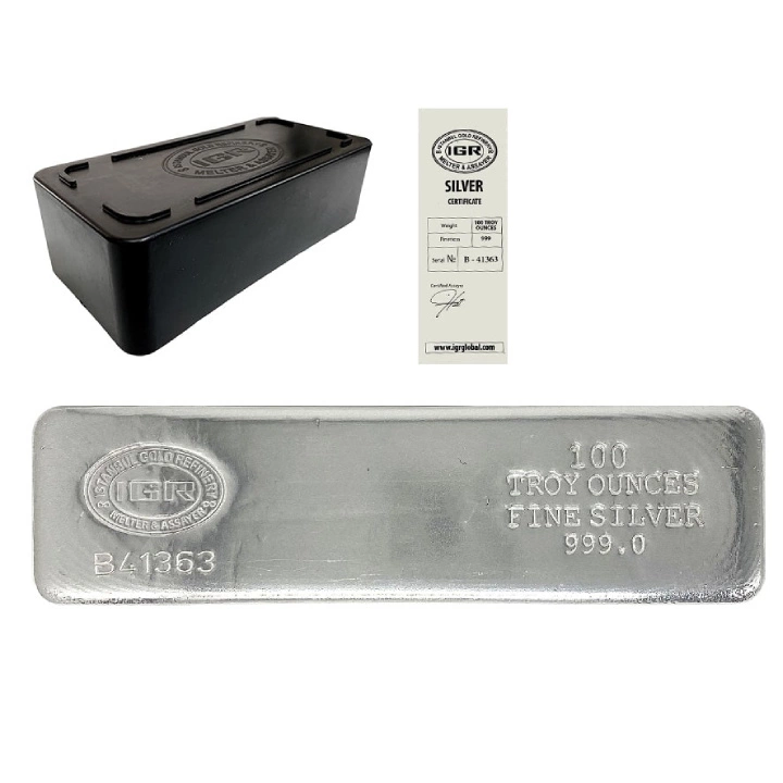 Der Silberbarren des weltweit renommierten Edelmetallherstellers IGR ist ein Produkt für alle Anleger. Es handelt sich um einen Silberbarren aus reinem Silber der Feinheit 999 mit einem Gewicht von 100 Troy-Unzen. Erwähnenswert ist, dass der Hersteller des Barrens akkreditiert ist und im Produktionsprozess von Edelmetallen die höchsten Qualitäts- und Sicherheitsstandards erfüllt, wodurch er für seine Produkte die höchstmögliche Qualitätsgarantie gewährleistet.