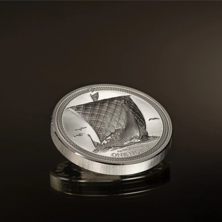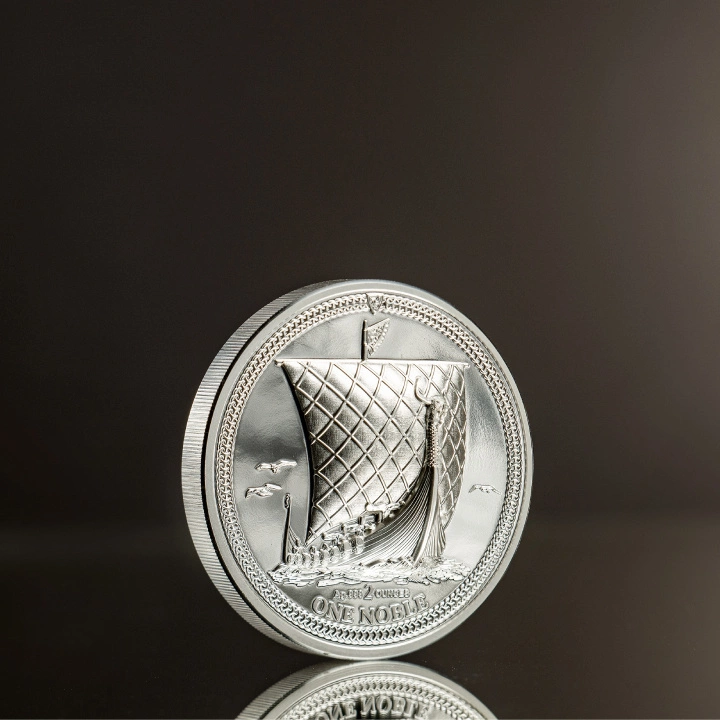 Die Isle of Man: One Noble 2 ounce Silver 2023 Proof Piedfort Ultra High Relief Sammlermünze zeigt ein Wikingerschiff.Dies ist ein äußerst interessantes Stück, das mit viel Liebe zum Detail hergestellt wurde. Die Münze kann eine Bereicherung für das Portfolio eines Sammlers und Anlegers sein.