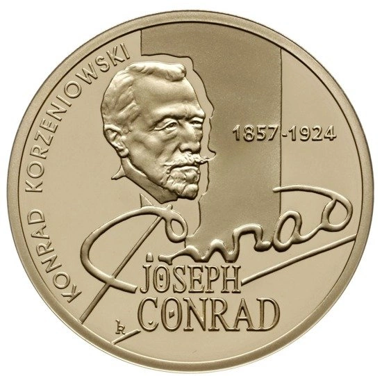 Złota moneta kolekcjonerska z wizerunkiem Konrada Korzeniowskiego pochodzi z Narodowego Banku Polskiego. Złoty walor posiada masę wynoszącą 15,50 gramów oraz próbę złota 900. Jej niezwykłość podkreśla lustrzane wykończenie oraz limitowany nakład, który wyniósł 8 200 sztuk. Całość wraz z certyfikatem autentyczności znajduję się w eleganckim etui.