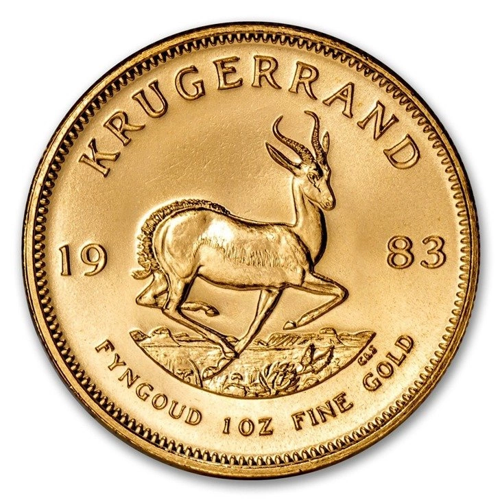 Złote monety z wizerunkiem antylopy springbok są wybijane nieprzerwanie od roku 1967. Początkowo były produkowane wyłącznie w wadze jednej uncji, jednakże od roku 1980, wprowadzono Krugerrandy o wadze 1/2, 1/4 i 1/10 uncji złota. Co ciekawe, nazwa złotej monety bulionowej powstała z połączenia słów "Kruger" oraz "rand" - będącego nazwą waluty obowiązującej w RPA.