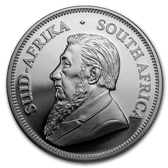 Srebrne Krugerrandy są wybijane przez Południowoafrykańską mennicę Rand Refinery. Stanowią pełnoprawny środek płatniczy, posiadający gwarancję rządu Południowej Afryki co do legalności, czystości kruszcu oraz pochodzenia metalu. Interesujące jest to, iż chociaż Krugerrandy są pełnoprawnym środkiem płatniczym, nie mają wartości pieniężnej. Oznacza to, że Południowoafrykański Bank Rezerwy jest zobowiązany do odkupienia monet po obowiązującej cenie kruszcu. Awers zdobi portret Paula Krugera, natomiast otok zawiera słowa „Afryka Południowa” w języku afrykanerskim oraz angielskim. Rewers przedstawia antylopę springbok, która jest symbolem Południowej Afryki. Po jej obu stronach znajdują się liczby reprezentujące rok wybicia, poniżej widnieje napis „Fynsilwer 1oz fine silver r1”, wskazujący zawartość czystego srebra.