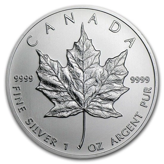 Na rewersie monety został przedstawiony liść klonowy, będący symbolem narodowym Kanady, a także próba w jakiej została wybita moneta (Ag .9999) oraz nazwa kraju (Canada), w którym jest produkowana.