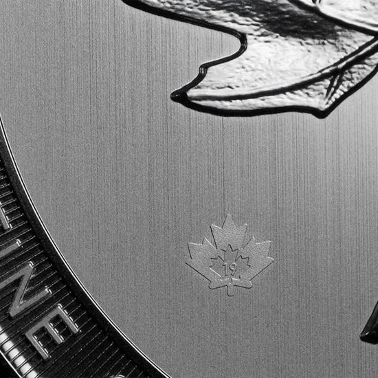 Na rewersie monety został przedstawiony liść klonowy, będący symbolem narodowym Kanady, a także próba w jakiej została wybita moneta (Ag .9999) oraz nazwa kraju (Canada), w którym jest produkowana.