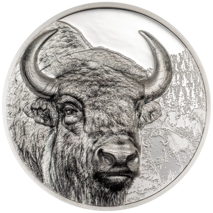 Rückseite stellt einen imposanten Bison in seiner natürlichen Umgebung dar, was seine Macht und Wildheit betont. Diese Münze ist gesetzliches Zahlungsmittel in der Mongolei, und die Prägung erfolgt durch die renommierte Münzanstalt CIT - Coin Invest AG.