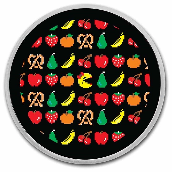 Das Produkt PAC-MAN Pixel Pattern colored 1 oz Silver Slab ist ein wahrer Leckerbissen, der unverwechselbare Elemente des kultigen PAC-MAN-Videospiels zeigt. PAC-MAN ist ein Arcade-Computerspiel, das 1980 von Namco entwickelt wurde.
