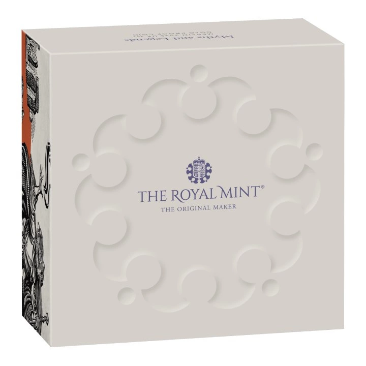 Die Münze ist ein weiteres Stück aus der zweiten Myths & Legends Serie. Die Münze ist aus reinem Au.9999-Bullion geprägt, wiegt eine Feinunze und misst 32,69 mm im Durchmesser, im Proof-Standard. Außerdem wurde dieses außergewöhnliche Stück von der Royal Mint hergestellt. Das Produkt ist in seiner Originalverpackung untergebracht. Die Regierung des Vereinigten Königreichs garantiert die Legalität, die Reinheit des Barrens und die Herkunft des Metalls, und die Münze ist ein vollwertiges gesetzliches Zahlungsmittel im Land des Ausstellers.