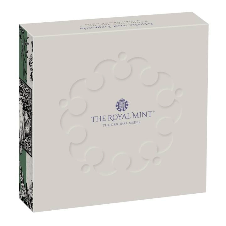 Die Münze stammt aus der Serie Myths & Legends. Die Münze ist aus reinem Ag.999-Bullion geprägt, wiegt eine Feinunze und misst 38,61 mm im Durchmesser, im Proof-Standard. Außerdem wurde dieses außergewöhnliche Stück von der Royal Mint hergestellt. Das Produkt ist in seiner Originalverpackung untergebracht. Die Regierung des Vereinigten Königreichs garantiert die Rechtmäßigkeit, die Reinheit des Barrens und die Herkunft des Metalls, und die Münze ist im Land des Ausstellers ein vollwertiges gesetzliches Zahlungsmittel.