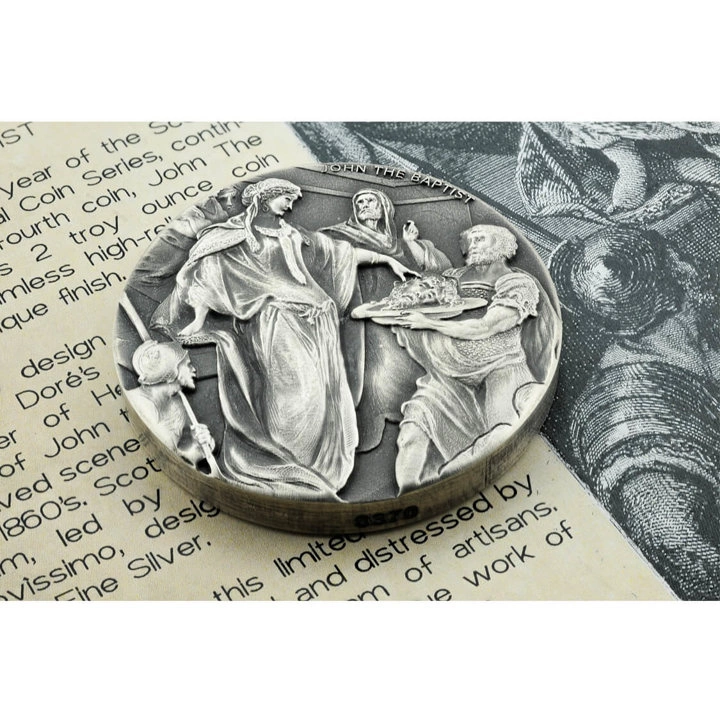 Die Niue: Biblical - John the Baptist 2 ounce Silver 2018 Proof Antiqued Coin ist ein einzigartiges Produkt, das für Katholiken und Christen eine besondere Bedeutung hat. Die Münze gehört zu der Biblischen Serie. Die Münzen dieser Serie stellen bedeutende Ereignisse aus der Bibel dar. Die Münzsammlung kann eine interessante Ergänzung eines Portfolios für Gläubige sein, sei es als Kapitalanlage oder für Sammler, die eine Münze mit einer Botschaft suchen.