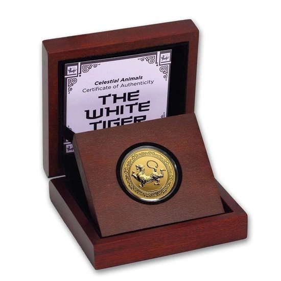 Biały Tygrys to złota moneta kolekcjonerska, która stanowi drugie wydanie serii Niebiańskie Zwierzęta. Jest to seria poświęcona mitycznym stworzeniom, które są połączone ze starożytną chińską praktyką – Feng Shui. Złote monety tworzące tą niecodzienną kolekcję są dostarczane w ekskluzywnym etui oraz posiada certyfikat autentyczności.