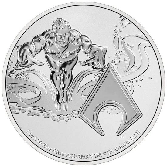 Srebrny Aquaman jest wybijany z czystego kruszcu próby Ag.999, o wadze jednej uncji trojańskiej oraz średnicy liczącej 40.7 mm. Za jego produkcję odpowiada znany producent wyrobów menniczych- New Zealand Mint. Ponadto, każdy egzemplarz posiada gwarancję rządu Nowej Zelandii oraz stanowi pełnoprawny środek płatniczy na terenie kraju emitenta.